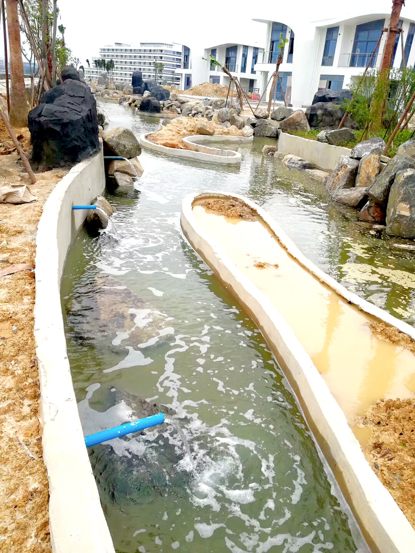 The customer pumping seawater into the artificial landscape pool in the hotel. It requires long time running. There are total 8 units of 10HP with 6 inch outlet IC Submersible Dewatering Pumps (IC-610) were installed. IC series pump is equipped with water-cooled motor to ensure a longer life in continuous and intermittent operation also able to cover by sea sand, able to reduce the noise effectively. The hardness of chrome steel impeller can reach 25~ 30 Rockwell scale which is better anti-corrosion of seawater and abrasion of sea sand.